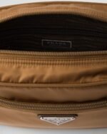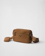 Functionality and sleek lines meet in this shoulder bag with a compact, rectangular design that recalls the streetwear world. Accented with the enameled metal triangle logo and a removable pouch that emphasizes its contemporary character, the accessory is made of innovative Re-Nylon fabric produced from recycled, purified plastic material collected in the ocean.