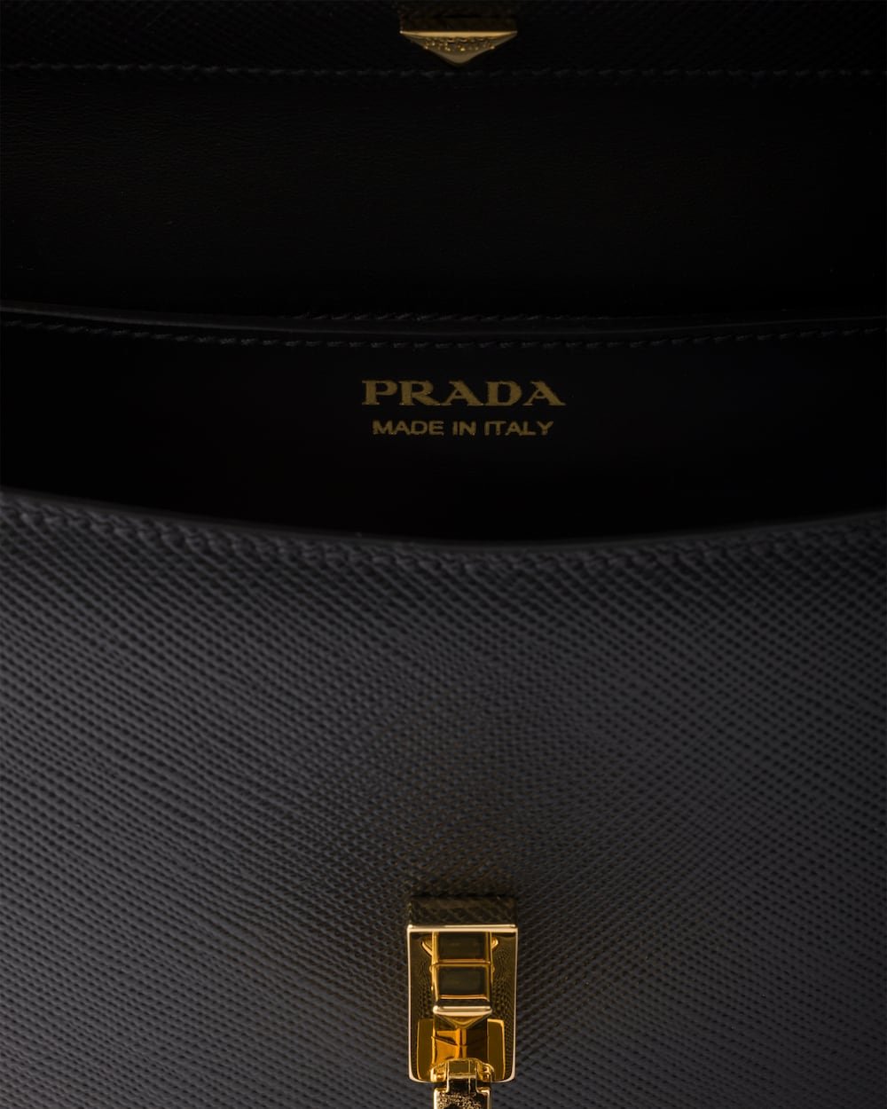 - Flap closure with logoed push-lock clasp