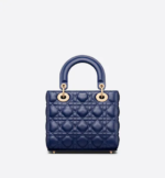 The Lady Dior My ABCDior bag epitomizes the House’s vision of elegance and beauty. Sleek and refined, the timeless style is crafted in royal blue lambskin with Cannage stitching, creating the instantly recognizable quilted texture, while the pale gold-finish metal ‘D.I.O.R.’ charms embellish and illuminate the silhouette. Featuring a shoulder strap that can be customized by adding badges, the small, unique style may be carried by hand or worn crossbody.