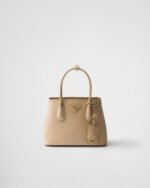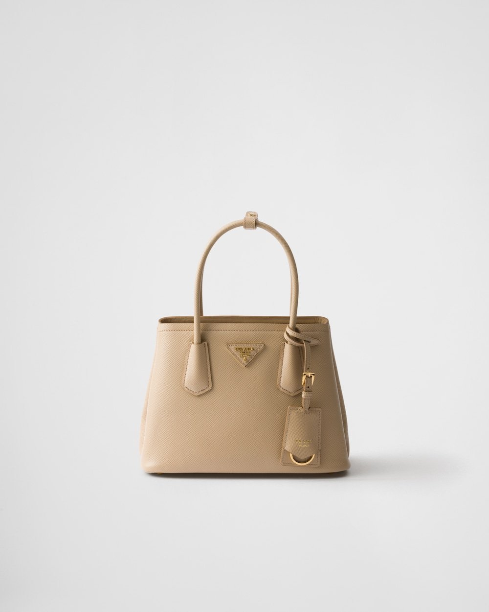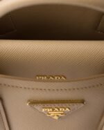 Delicate and refined details give new life to iconic brand designs like the Prada Double handbag, reinterpreted with a compact design. The tonal leather triangle frames the iconic metal lettering logo that gleams on the front, while the detachable shoulder strap makes it possible to also wear as a cross-body or shoulder bag.