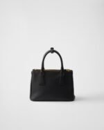 The sophisticated and timeless Prada Galleria bag combines the industrial precision and meticulous craftsmanship inherent in the brand’s DNA. Composed of over 80 individual pieces assembled by hand, the style celebrates the historic store opened in 1913 in Galleria Vittorio Emanuele II of Milan. The leather accessory, presented in a refined small version, is completed with the emblematic triangle logo.